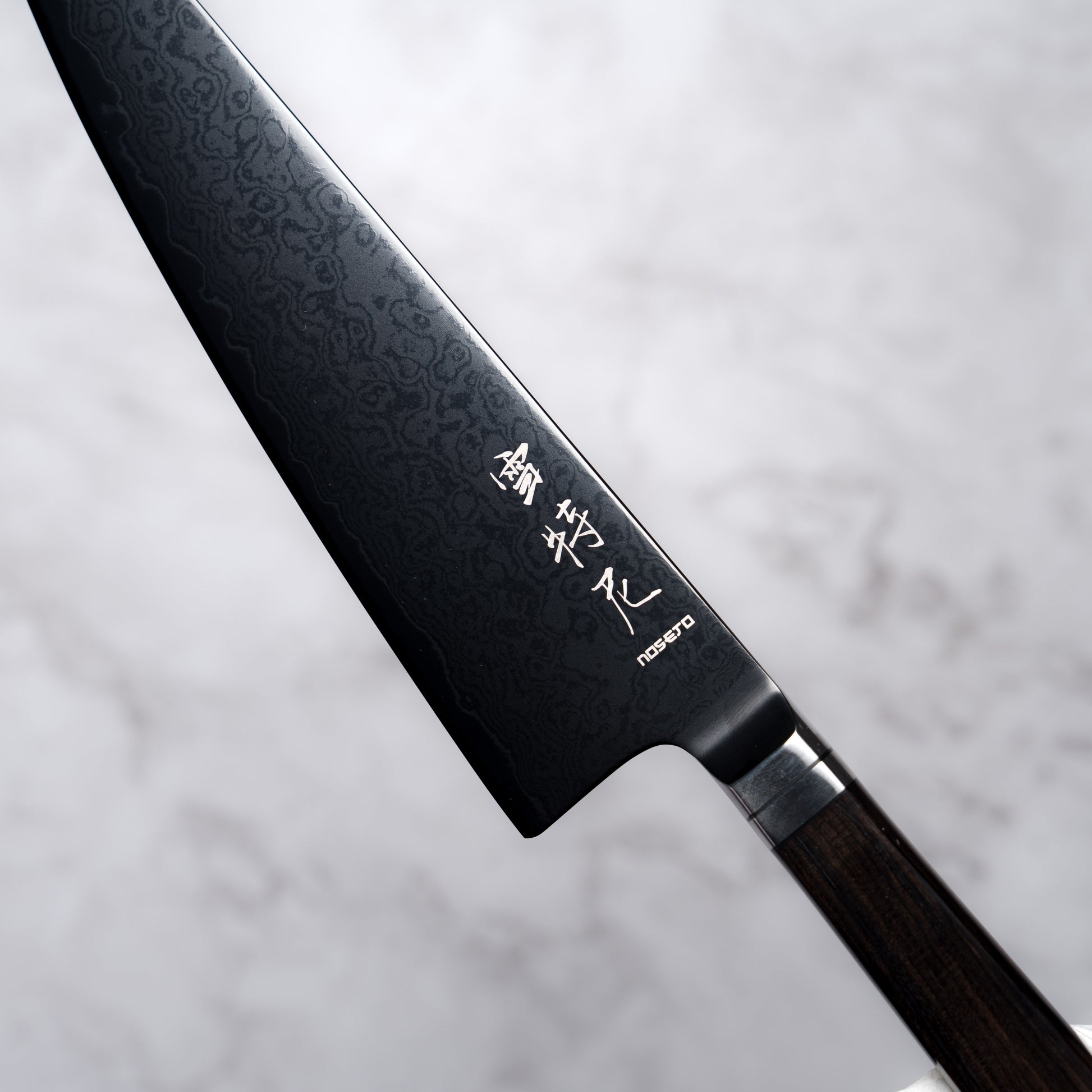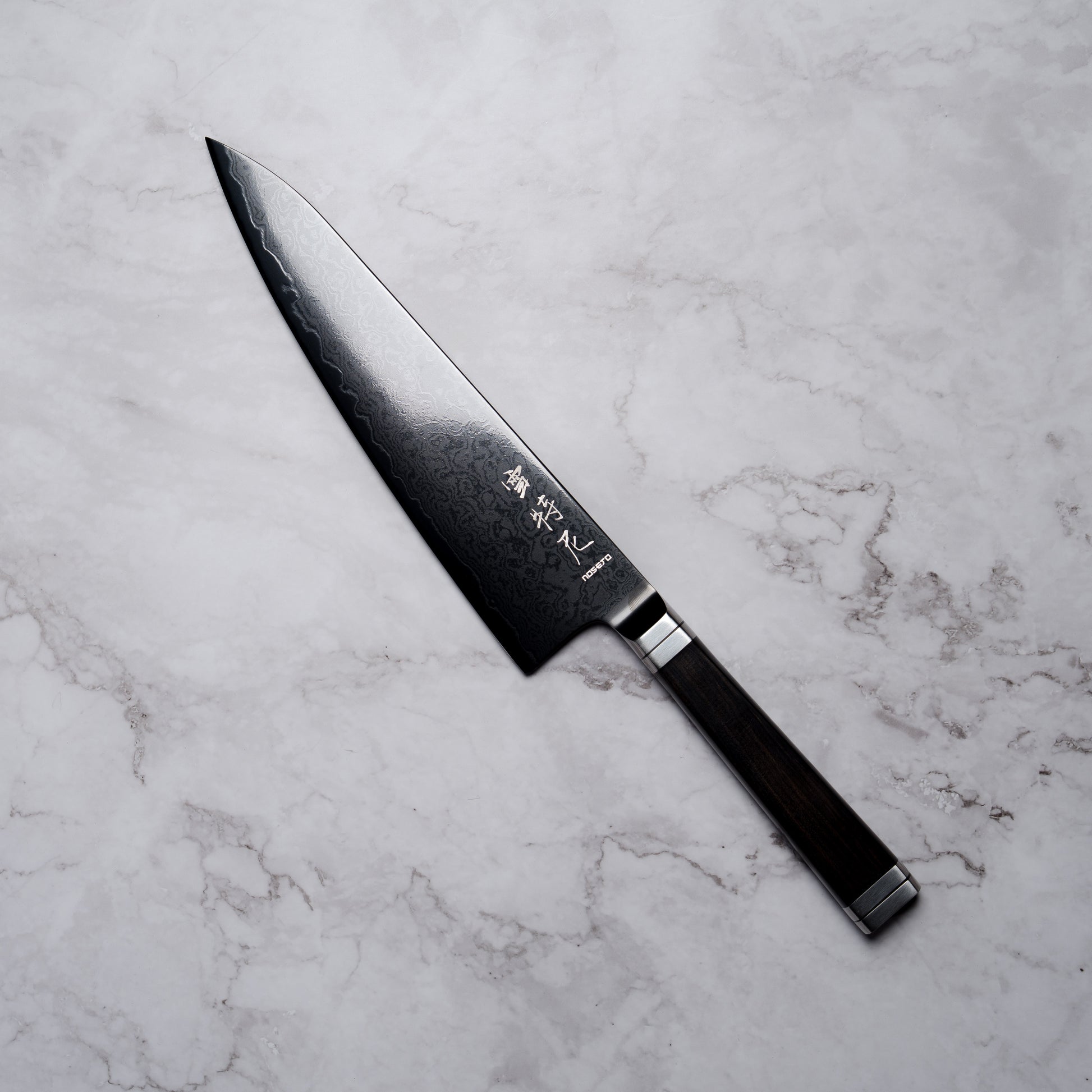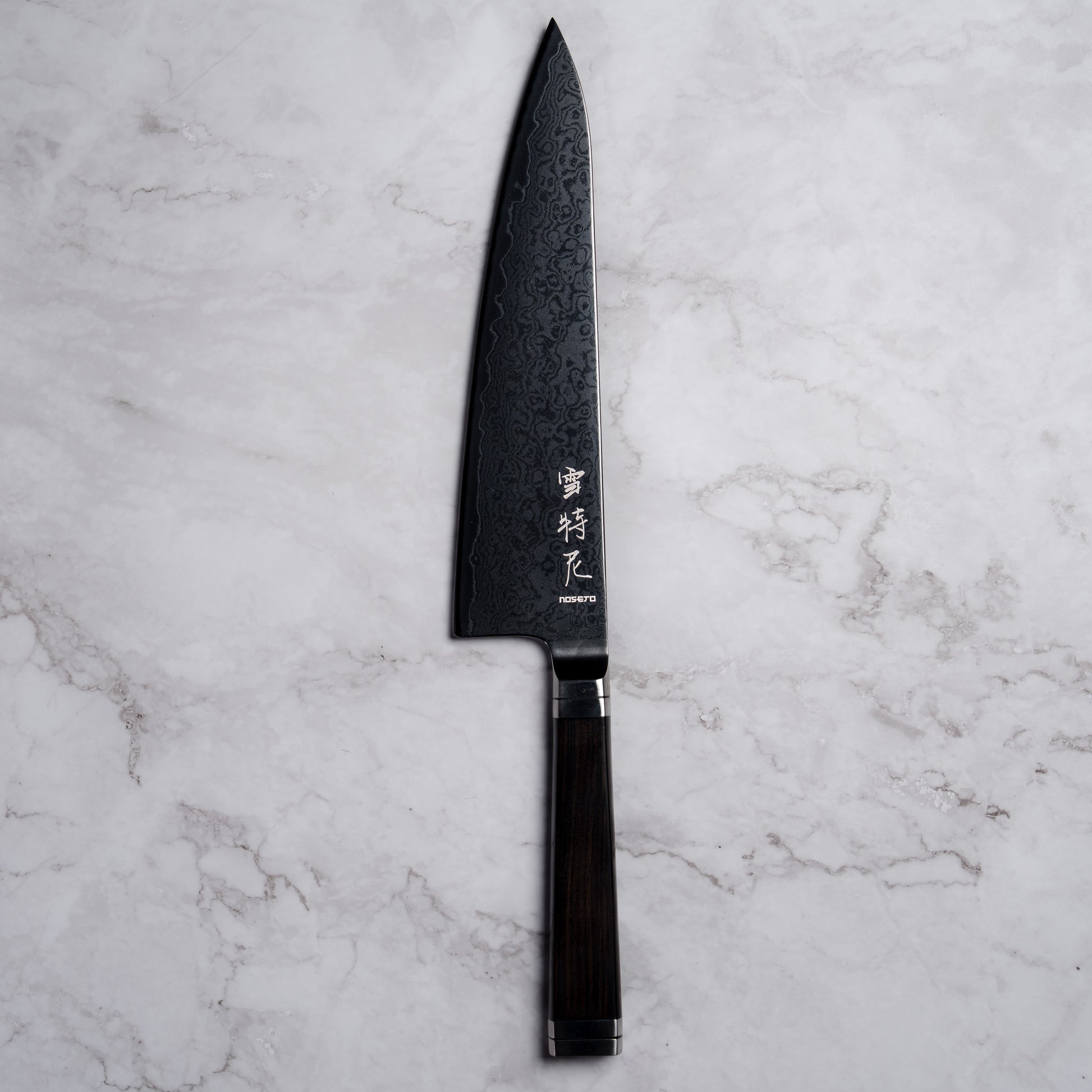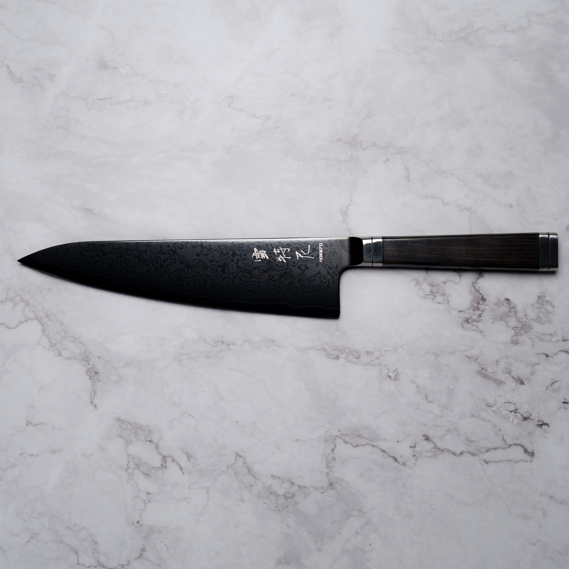 Noseto Buto Gyuto 210mm Aus-8 Black Titanium Damascus Ebony Handle