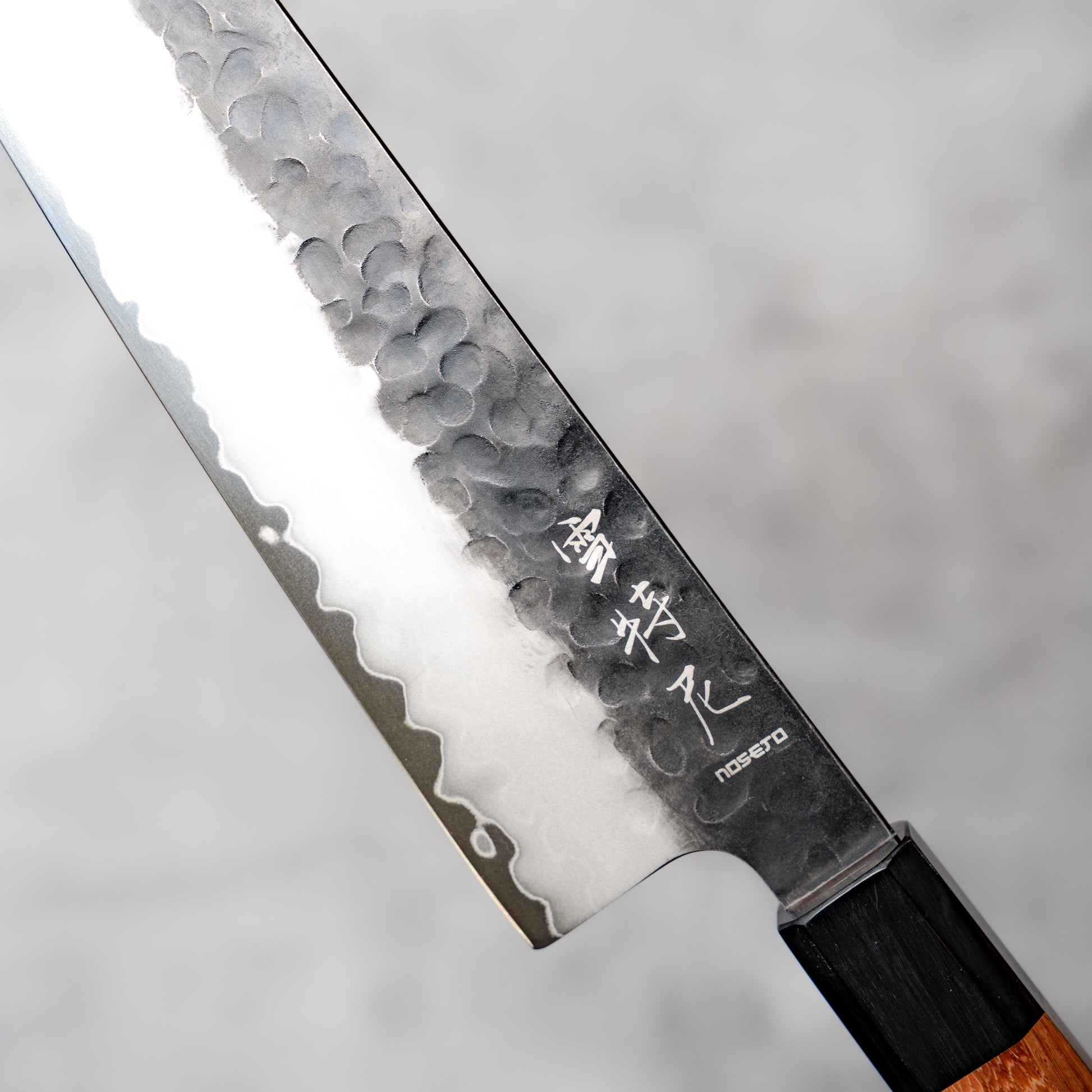 The Noseto Neno 240mm is a high-performance gyuto crafted from 3-layer clad steel with a 10Cr core, delivering excellent sharpness, strength, and edge retention. Longer than the 210mm version, this 240mm blade offers more cutting power, more reach, and smoother slicing for larger ingredients, making it ideal for professional kitchens or cooks who prefer a longer gyuto.
